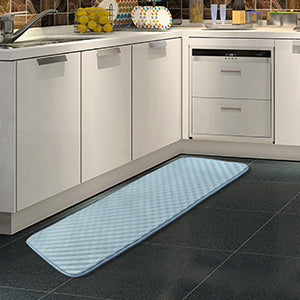 高密度低反発フォームが、足裏の体圧を優しく分散。ふかふかで包み込むような柔らかな感触は、足腰への負担を和らげ、キッチンなどで立つ作業時の疲労軽減にも役立ちます。優れたクッション性は防音効果も発揮します。
